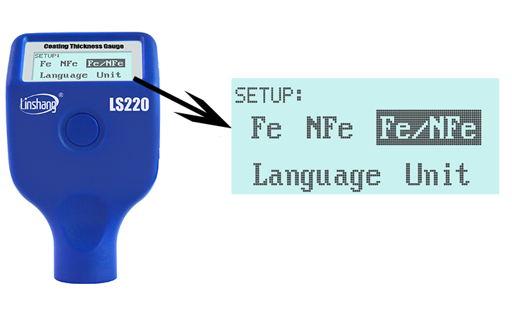 林上LS220涂層測厚儀具有三種測量模式,分別為Fe,NFe,F(xiàn)e/Nfe。建議使用自動識別模式,儀器會自動識別基底材質(zhì)并自動轉(zhuǎn)換模式。