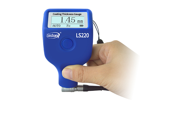 林上膜厚儀的最小測量區(qū)域直徑是25mm,只要是大于這個區(qū)域的材料都可以測。下面就用膜厚儀LS220來測量一塊小工件上的涂層厚度。在測量時垂直按壓在小工件上,0.5秒就可以快速測量出厚度。