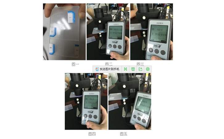 這次收到了一個客戶樣品(如上圖),測試不同四個點的透光率,樣品上可以看得出不同地方磨砂程度和厚度不同,這種樣品屬于乳白磨砂材料,只能用乳白材料透光率儀LS117來測試,測試數(shù)據(jù)分別如下圖(圖二、圖三、圖四、圖五),不同地方的透光率不同,最高達到93%,最低的有76%。