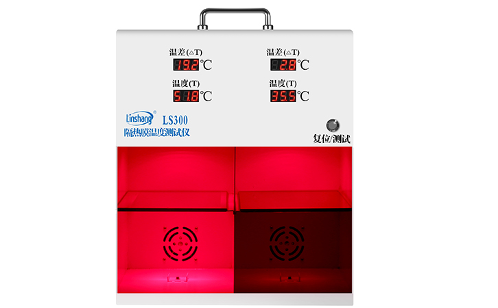 儀器尺寸: 340mm×200mm×400mm(L*W*H),外形高大上,操作簡便,可以讓客戶自己動手操作,及其適用于展廳跟客戶互動。儀器可以顯示實時溫度和放入材料后上升的溫度差,把手伸到儀器下方還能明顯感受到隔熱效果。直觀的數據和人體感知差異,加上與客戶的良好互動,還需要擔心自己說的口干舌燥客戶卻興致缺缺嗎?