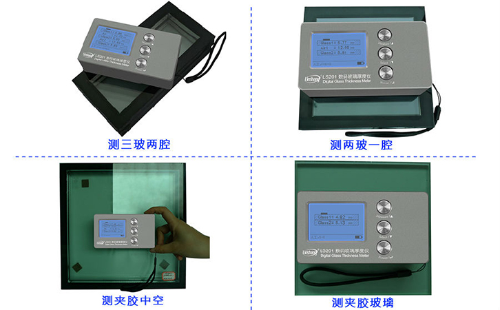 首先是測量的測試樣品,LS201玻璃厚度儀是一款可明確測出三玻兩腔玻璃的玻璃厚度和空氣層厚度的儀器,但是直尺和游標卡尺卻只能直接測出這種類型玻璃的總厚度卻不能分別檢測出玻璃的厚度和空氣層的厚度。