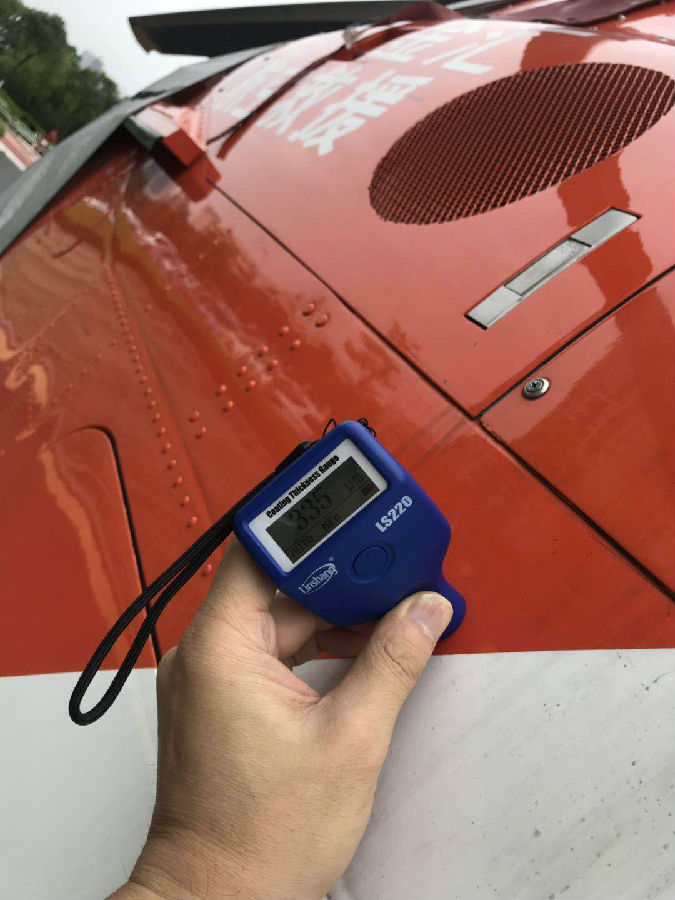 用LS220漆膜儀對直升飛機油漆厚度和材料進行檢測