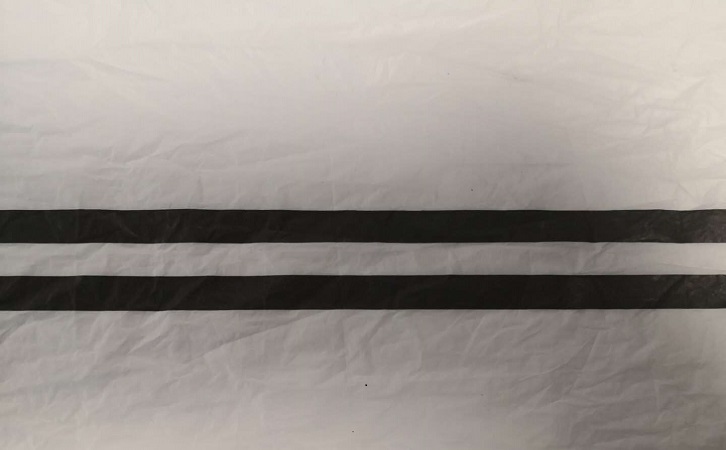 例如一個客戶要在膜材上鍍石墨導電涂層(如下圖,材料上黑色的兩條線即為石墨導電涂層),石墨導電涂層的均勻性直接影響到導電的效果,在生產的過程中,由于量大和膜材長,用普通的光密度儀人工測試每個位置的光密度,別說人工成本會大大增加,效率也底下,實際上就難以實現。而真空鍍膜在線光密度測試儀就解決了這個問題,測試支架支架安裝在鍍膜機上,實現在線自動測試,實時監控數據,超出設定的合格范圍就報警,讓客戶輕松了解鍍層的實際情況,實時調整鍍膜機的技術參數,節約材料和時間成本。